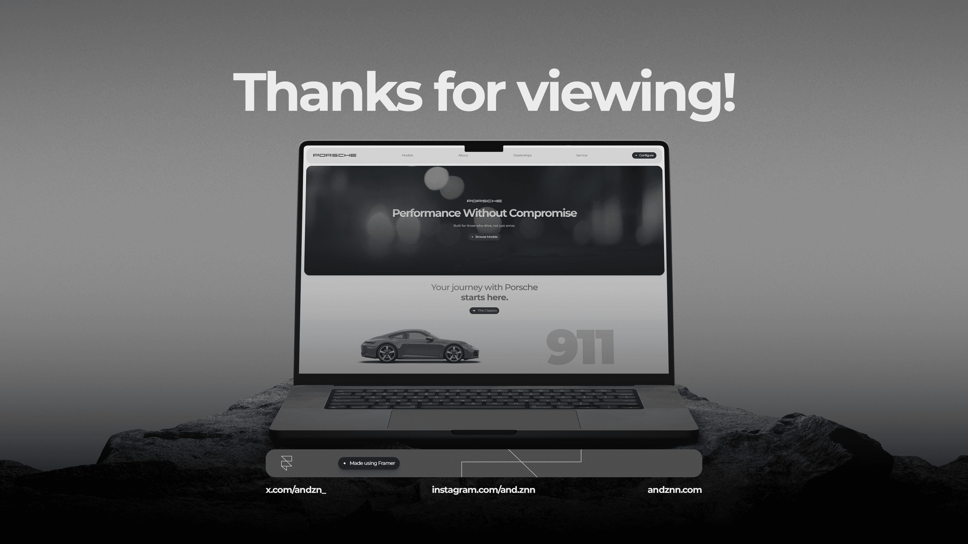The project was designed and built entirely in Framer, allowing the interface to be fully responsive and enhanced with smooth interactions and modern web animations. The result is a sleek, high-performance website concept that reflects the precision and elegance associated with Porsche.